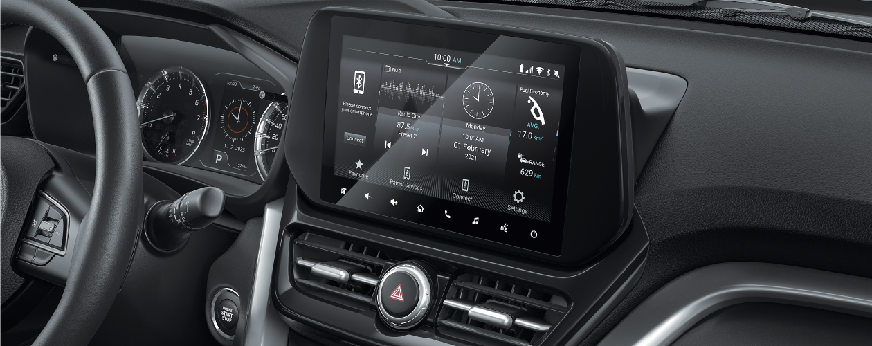 En el interior, disfrutá de una experiencia premium con su estilo distintivo en su espaciosa cabina. Los asientos están hechos de material de alta calidad que destila elegancia. Las suaves almohadillas forradas en tela doble tono, detalles cromados en el panel de instrumentos y los adornos de las puertas le dan un aspecto de primera.
