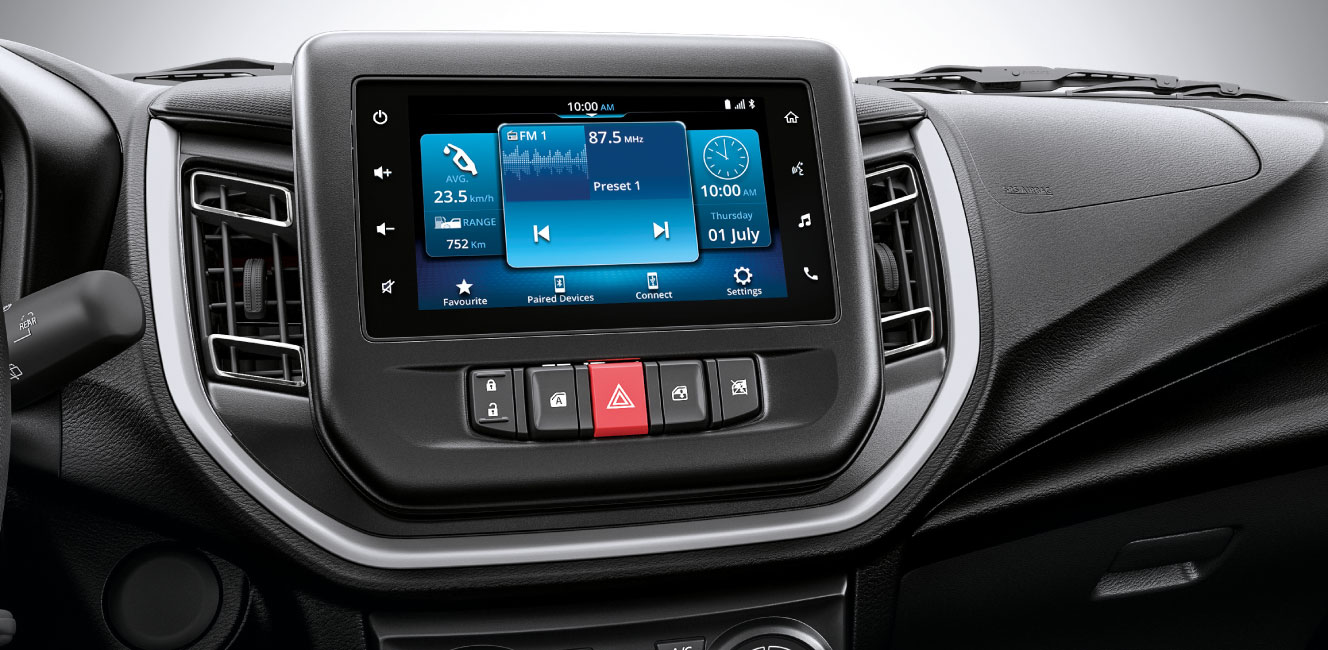 El interior cuenta con asientos abatibles, que permiten aumentar el volumen de carga, y para la comodidad del conductor, el Celerio cuenta con una radio con conexión Carplay, para disfrutar mejor cada viaje y tracción.