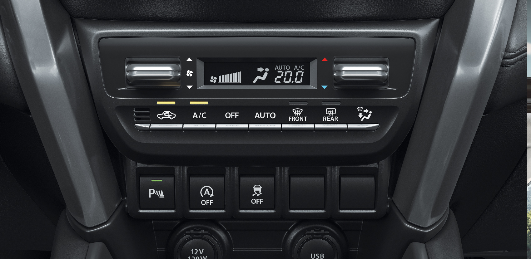 Las luces ambientales en la cabina se pueden ajustar en siete niveles a través de la pantalla de audio.